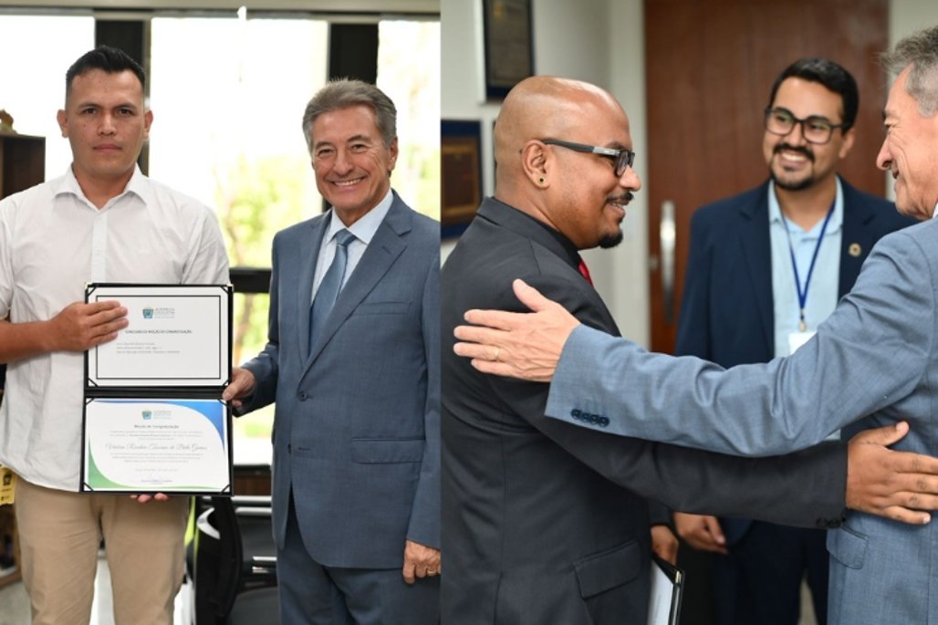 Na manhã desta quinta-feira, 26, o deputado estadual Roberto Hashioka (União) realizou a entrega de duas moções de congratulação em seu gabinete, na Assembleia Legislativa de Mato Grosso do Sul (Alems). As homenagens reconhecem trajetórias marcadas pelo compromisso com a sociedade sul-mato-grossense, nas áreas de segurança, capacitação profissional e políticas públicas para a juventude.
